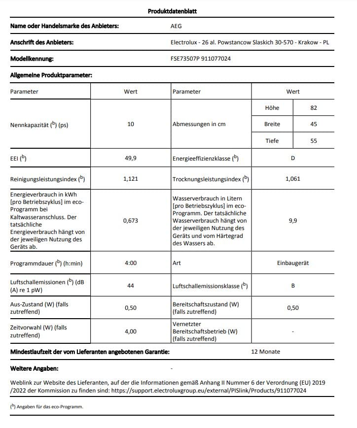 AEG Geschirrspüler Einbaugeschirrspüler Edelstahl Vollintegriert 10 Maßgedecke 45 cm Breite AirDry-Technologie