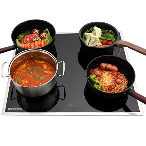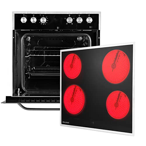 Weceleh Elektroherd mit Glaskeramik Kochset, 63L Schnellheizungsofen mit Grill, 6000W Keramik Kochfeld mit Knopf, Edelstahlrahmen, Timer, Kindersicher, Selbstreinigung [Energieklasse A]