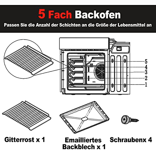 【Einbau-Backofen-Gehärtete Glastür】:Die Backofentür von Weceleh ist nicht mehr da hochwertigem, mehrschichtigem, gehärtetem Glas gefertigt. Sie können sehen, was sich im Ofen befindet und die Hitze sorgfältig prüfen. Eine wirksame Trennung gegen heißen Dampf sorgt für Sicherheit. Die abnehmbare Backofentür ist leicht zu reinigen.